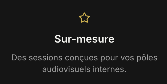 Nous formons vos équipes sur leurs propres projets. À la fin de la session, vos contenus sont produits et vos collaborateurs sont autonomes.